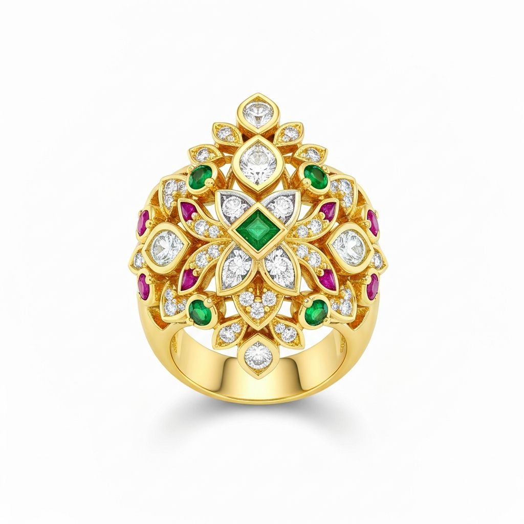 The Royal Kundan ring is an heirloom masterpiece. Each gemstone placement speaks to centuries of Indian artistry. It's not just jewelry—it's cultural heritage transformed into wearable art.